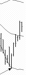 Once prices touch the lower band, the bar touching the lower band or the very next bar may become designated as the Gimmee bar.