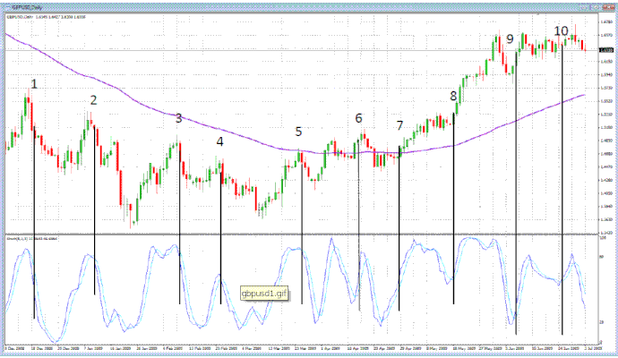 Please refer to the screen graphic below of the GBPUSD Since mid December 2008. Each line indicates where I entered a trade.