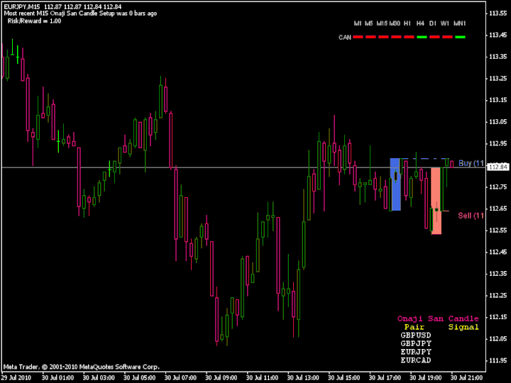 This system indicate the signal Buy or Sell on the Currency pairs: GBP/USD, GBP/GPY, EUR/JPY, RUR/CAD. The signal is generated when there is the brekout of the box.