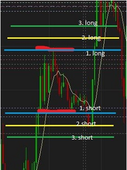 At the High on 124.60 we place the first LONG-entry and 10 Pips above the second and 10 Pips